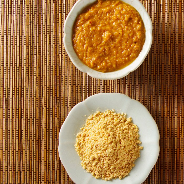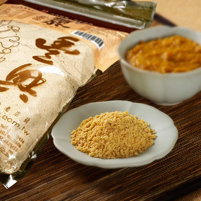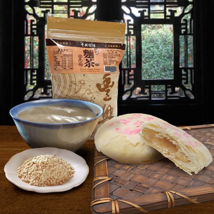 食用前取一大匙麵茶粉,充分攪拌於熱開水內,